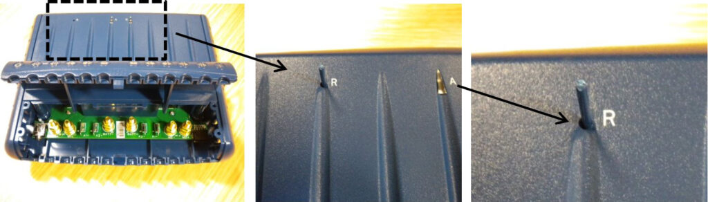 3) Insert pin into the hole marked ‘R’ (picture shown)