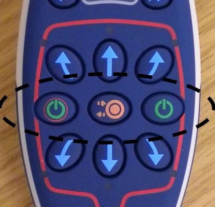 5) Switch the handset on by pressing both green buttons and immediately release.