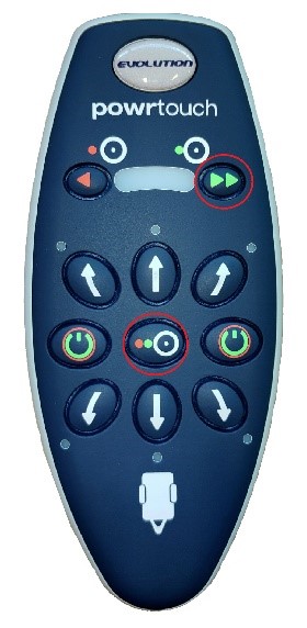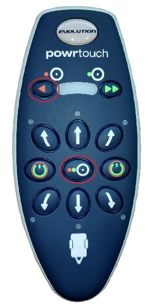 Press and hold the middle orange button then press the top left arrows indicated and release both.